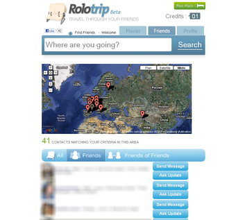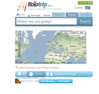 Un système de crédits permet de réguler RoloTrip. Lors de votre première connexion, vous recevez le premier crédit. Chaque personne que vous accueillez à la maison vous offre un "bon" supplémentaire, valable chez l'un de vos contacts Facebook. Une fois le choix de la destination arrêté, l'envoi de la demande se fait en cliquant sur "Send a message". Un message pré-défini en anglais est alors prêt à être envoyé depuis le site de Facebook. A vous ensuite de le modifier et de le personnaliser.